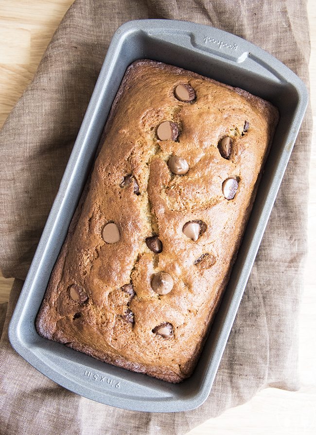 I’m pretty sure almost all banana bread recipes are good, because banana bread is just delicious. But this recipe is my favorite of all! This banana bread is perfectly moist and soft and stuffed full of chocolate chips making it the best banana bread ever!