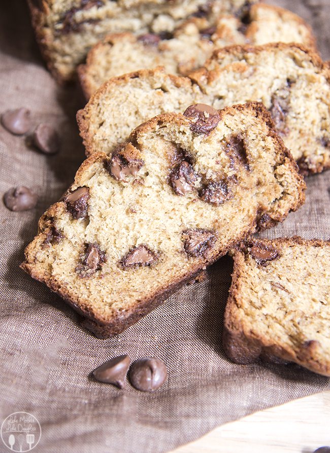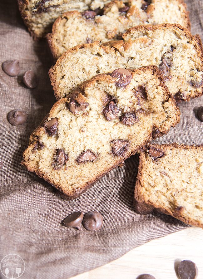 This is the BEST chocolate chip banana bread recipe. This sweet banana bread is perfectly moist and soft and stuffed full of chocolate chips throughout.