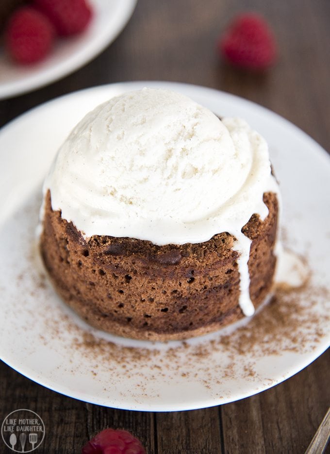 I’ve got a couple favorite desserts, but one of them that is definitely right there at the top is a chocolate molten lava cake! There isn’t much better than a hot gooey dessert, especially when its topped with ice cream! I just love the combo of the hot dessert and the cold ice cream as they mix together.