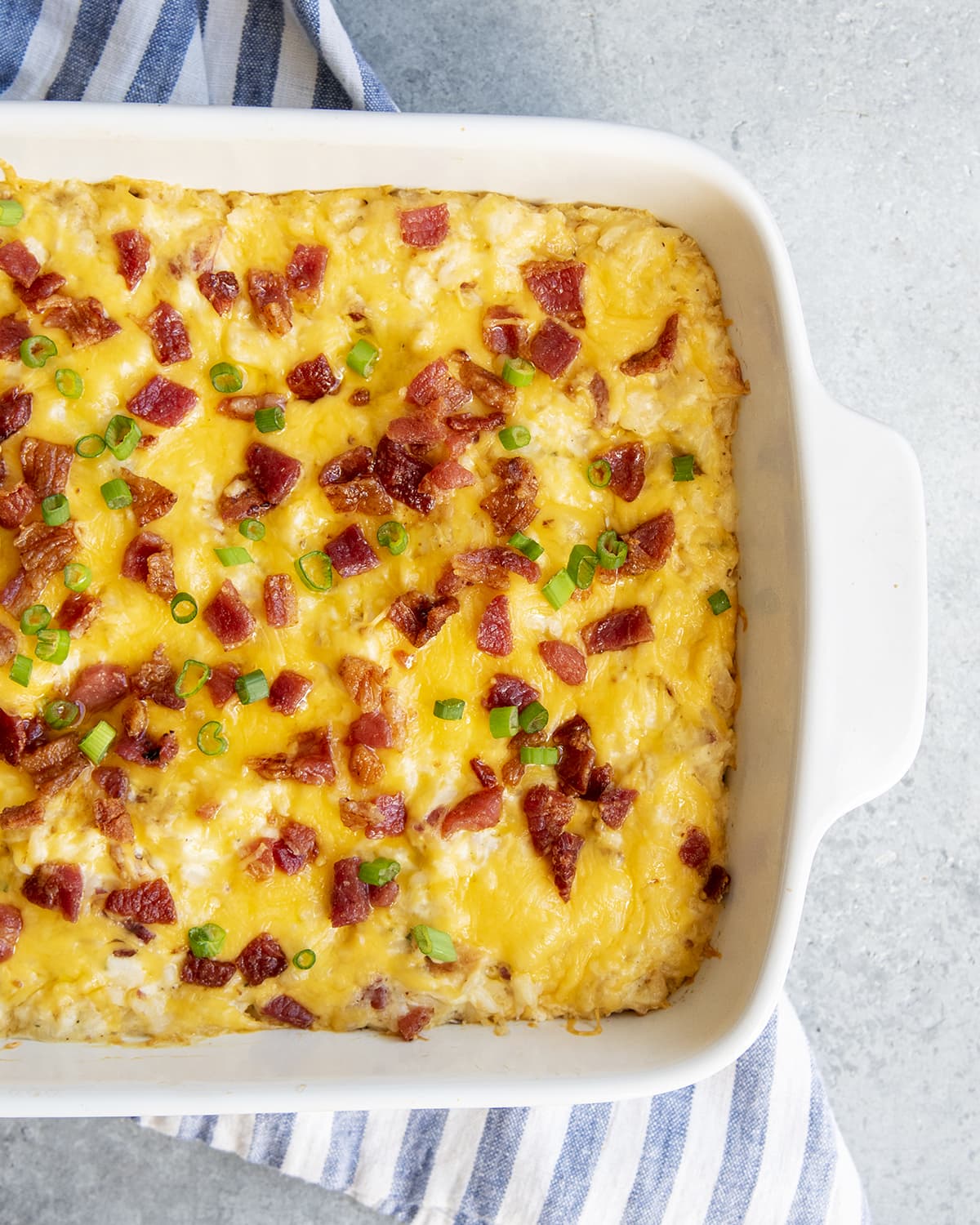 This crack chicken casserole is a delicious twist on the popular “crack chicken” dish, that is made with chicken, ranch, cheese, and bacon. What could be better than combining that all in a hearty casserole dish – it’s a winner for the whole family!