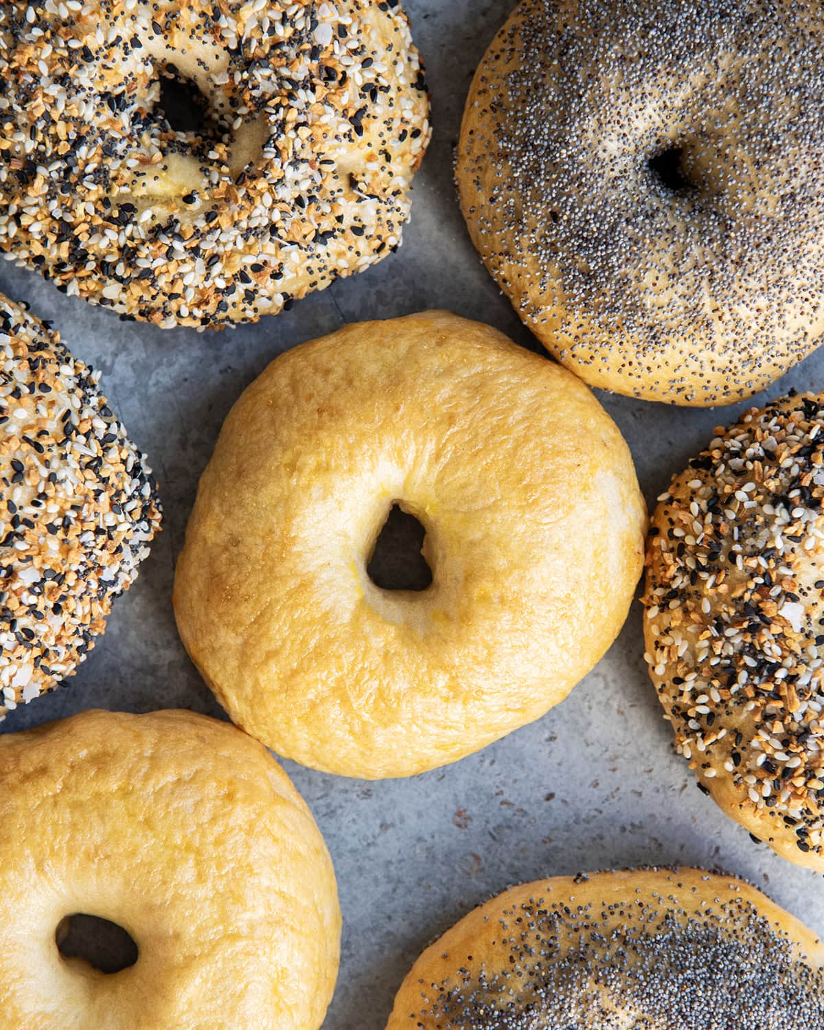 Brush the tops with butter and sprinkle the everything seasoning on top when you’re ready to bake them to prevent the butter from soggy-ing up the bread dough.