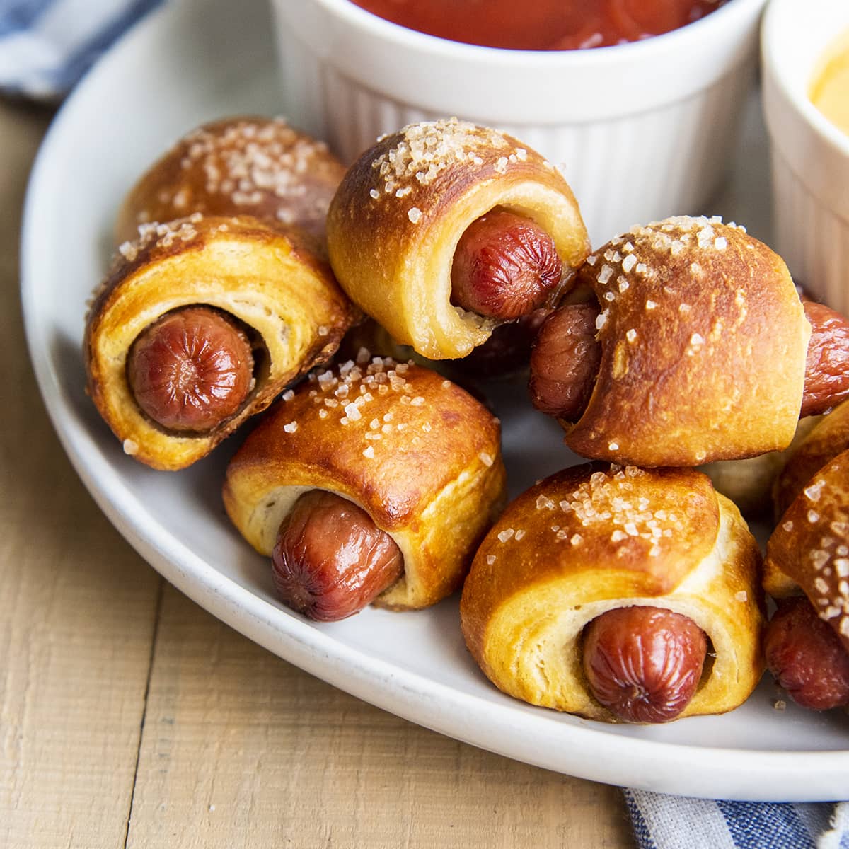 These pretzel pigs in a blanket are a simple way to take the party favorite to the next level. They’re a great appetizer that is perfect for a party, or game day!