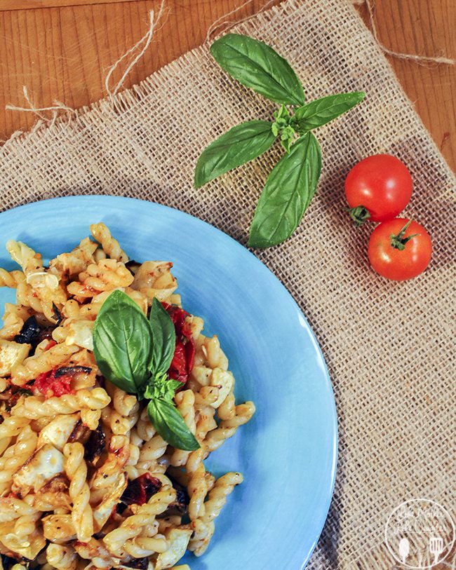 I don’t know about you but I am always looking for a wonderful, flavor bursting, but at least semi-easy recipes to use with my summer vegetables. Pasta with Roasted Summer Vegetables is one of those recipes. Roasting the vegetables brings out so much flavor and goodness, seriously if my mom would have roasted vegetables when I was growing up I would have eaten my vegetables. Instead of just peas and corn on the cob.